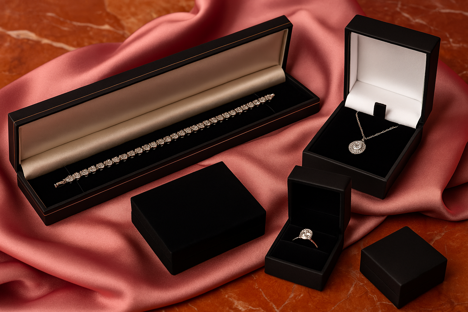 One of the UK’s leading suppliers of Jewellery and gift packaging, Finer Packaging supplies a large collection of point of sale material and packaging to the jewellery and gift trades. Our jewellery box collections, includes wooden, leatherette and cardboard jewellery boxes along with jewellery rolls.