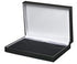 With hinges on the wide side this jewellery box, it is suitable for chokers, necklaces and jewellery sets, and opens in a horizontal position. The base pad is removable with velvet covered clips in the top corners to hold the item of jewellery in place.