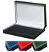 Classical leatherette covered collection of jewellery boxes, available in different colour outer materials. The boxes have gold tooling on the lid and around the box adding style and elegance to an old favourite. The interior is a white satin liner and velvet base. The boxes are supplied with white protective sleeves. The collection can be printed on the inside lid liner or on the side of the sleeve. A very popular and competitively priced collection of boxes that has defied time and is still as popular as ever.