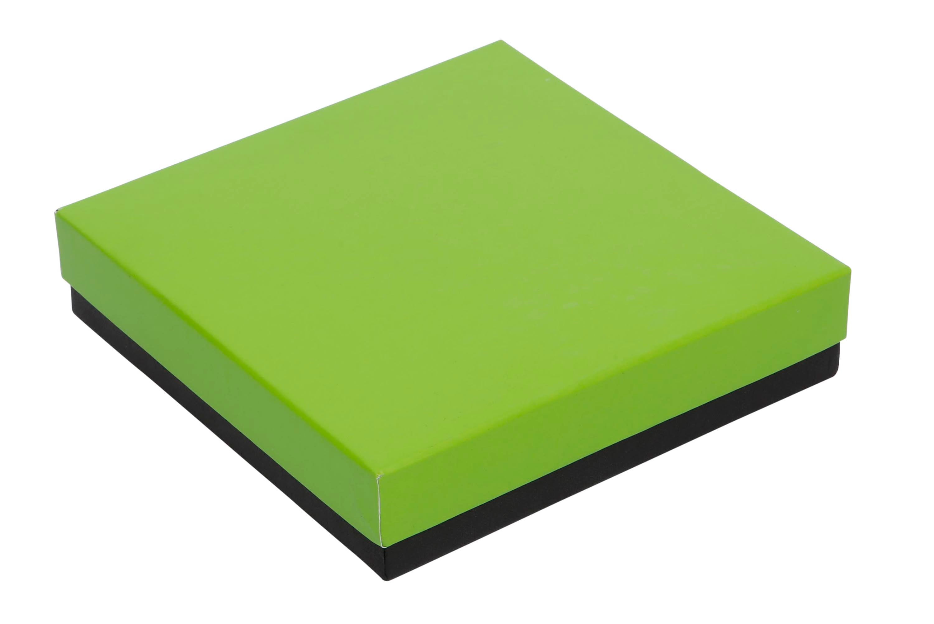 A collection of vibrant pink or green coloured covered boxes with a black base and a two-sided colour velvet base pad. These popular jewellery boxes will add a dash of colour to your display and show your products off to their advantage. The lids can be printed with your logo in a variety of colours.