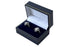 Highest quality traditional leather-look jewellery boxes. Available in Black or Blue with matching or white base pads. Dimensions: 74 x 51 x 39mm.