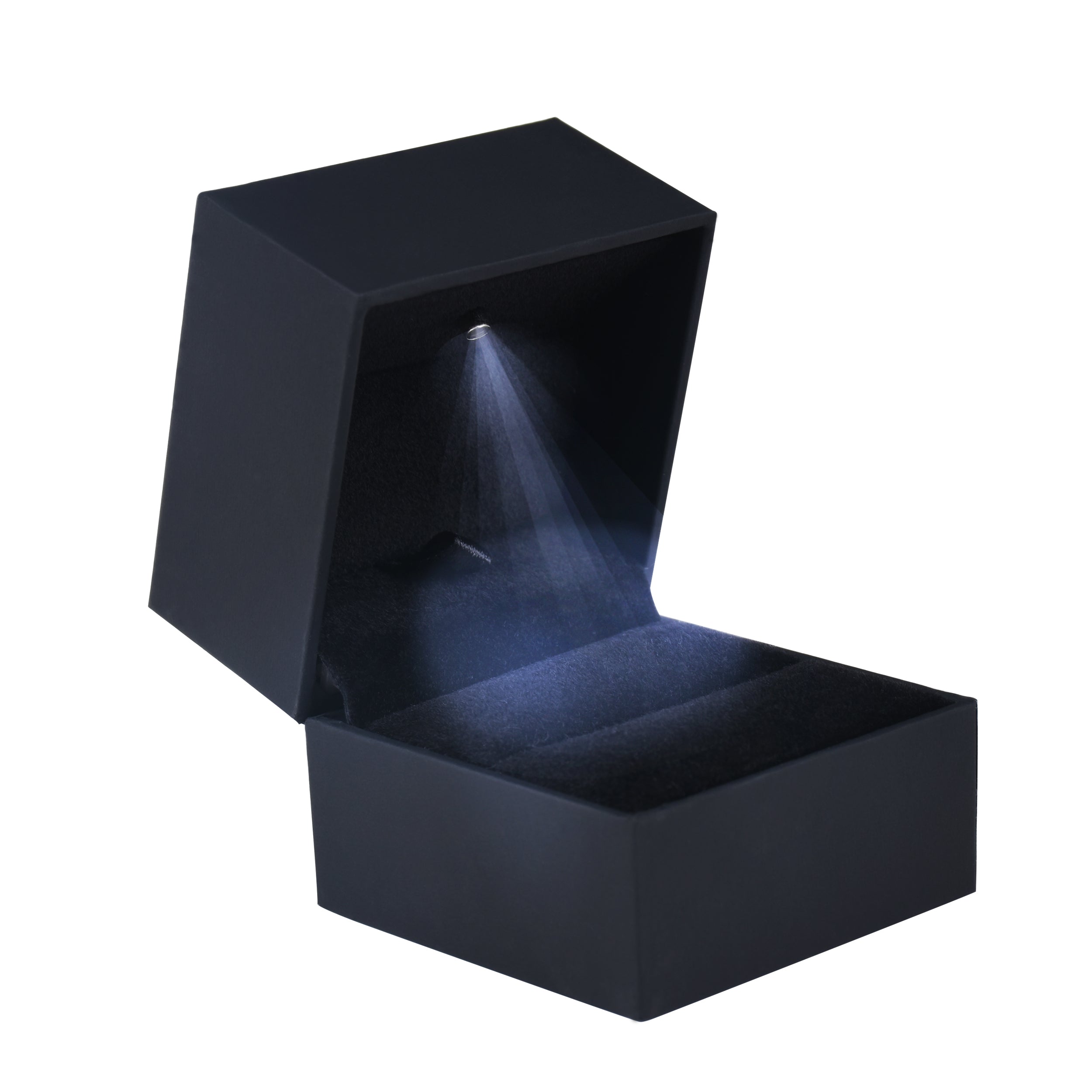 The Light Box is a jewellery Display box supplied with an LED light in the lid lining to illuminate the product lying inside. Ideal to Brighten up high-end diamond and stone jewellery. The batteries can be changed . This jewellery box is supplied in a matching 2-piece packer. The Light Box 2 piece packers can be printed on request.