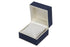 A stylishly designed collection of boxes. Covered in a black or blue weave embossed paper with an ivory trim giving an Art Decor look. There are three colour styles to choose from. Black or blue with an all ivory velvet and satin interior or black with an all-black interior. The boxes are supplied in white protective sleeves. The inside lid liners can be printed and personalised.